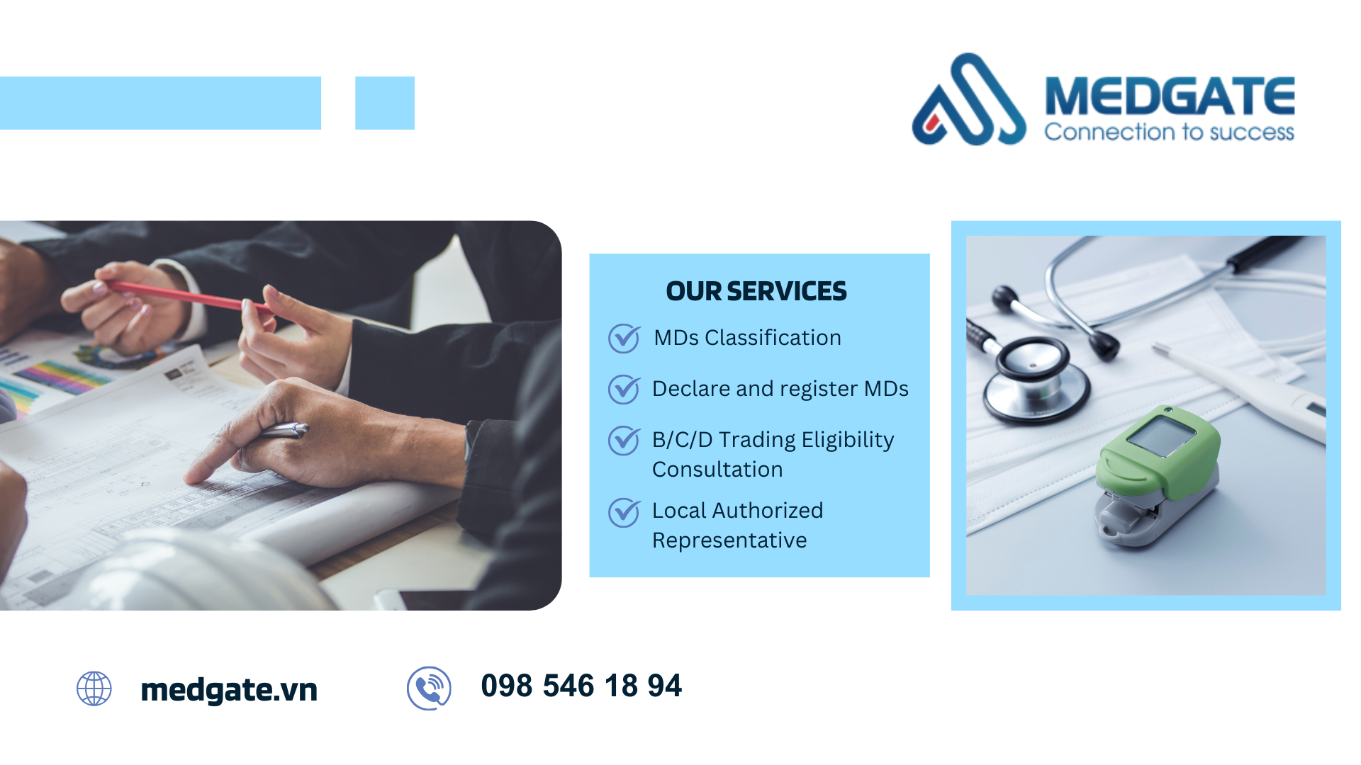 Để tìm hiểu thêm về dịch vụ đăng ký trang thiết bị y tế và quy trình để ra số lưu hành thiết bị y tế tại MEDGATE, vui lòng liên hệ Hotline: 098.546.1894 hoặc Email: medgatevn@gmail.com để được tư vấn về các dịch vụ hồ sơ, quy trình thủ tục, báo giá đăng ký công bố lưu hành, quảng cáo Thiết bị y tế.