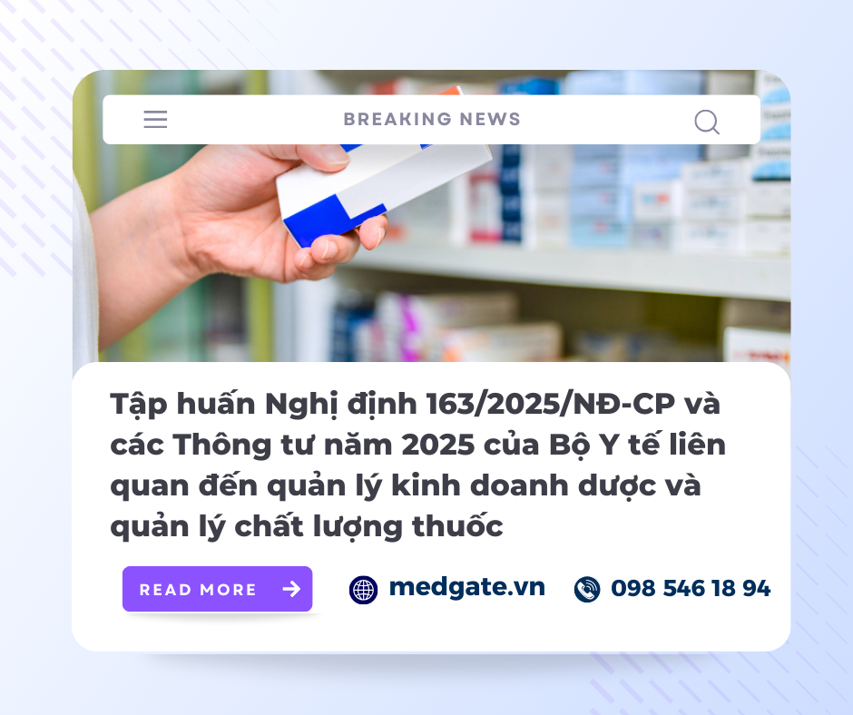 📢 Trung tâm Đào tạo và Hỗ trợ Doanh nghiệp Dược, Mỹ phẩm thông báo tổ chức các Lớp đào tạo, tập huấn: “Phổ biến các điểm mới và một số lưu ý khi triển khai Nghị định 163/2025/NĐ-CP và các Thông tư năm 2025 của Bộ Y tế về Quản lý kinh doanh dược, Quản lý chất lượng thuốc”.