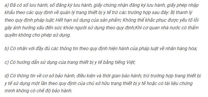 Về điều kiện lưu hành đối với trang thiết bị y tế